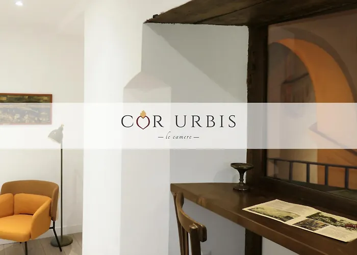 L'hotel Cor Urbis - Le Camere offre camere che dispongono di un balcone con un impianto di climatizzazione, una TV a schermo piatto con canali satellitari. Un bidet, un bagno con WC separato e una doccia sono provvisti nel bagno. Vanta una vista sul cortile interno.